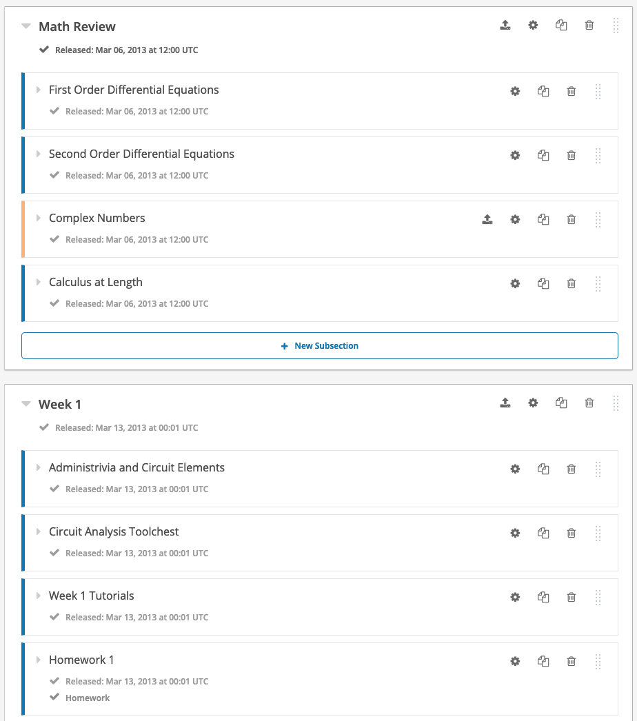 Construya y libere las secciones para sus estudiantes de forma incremental. No tiene que tener todo terminado de una sola vez.